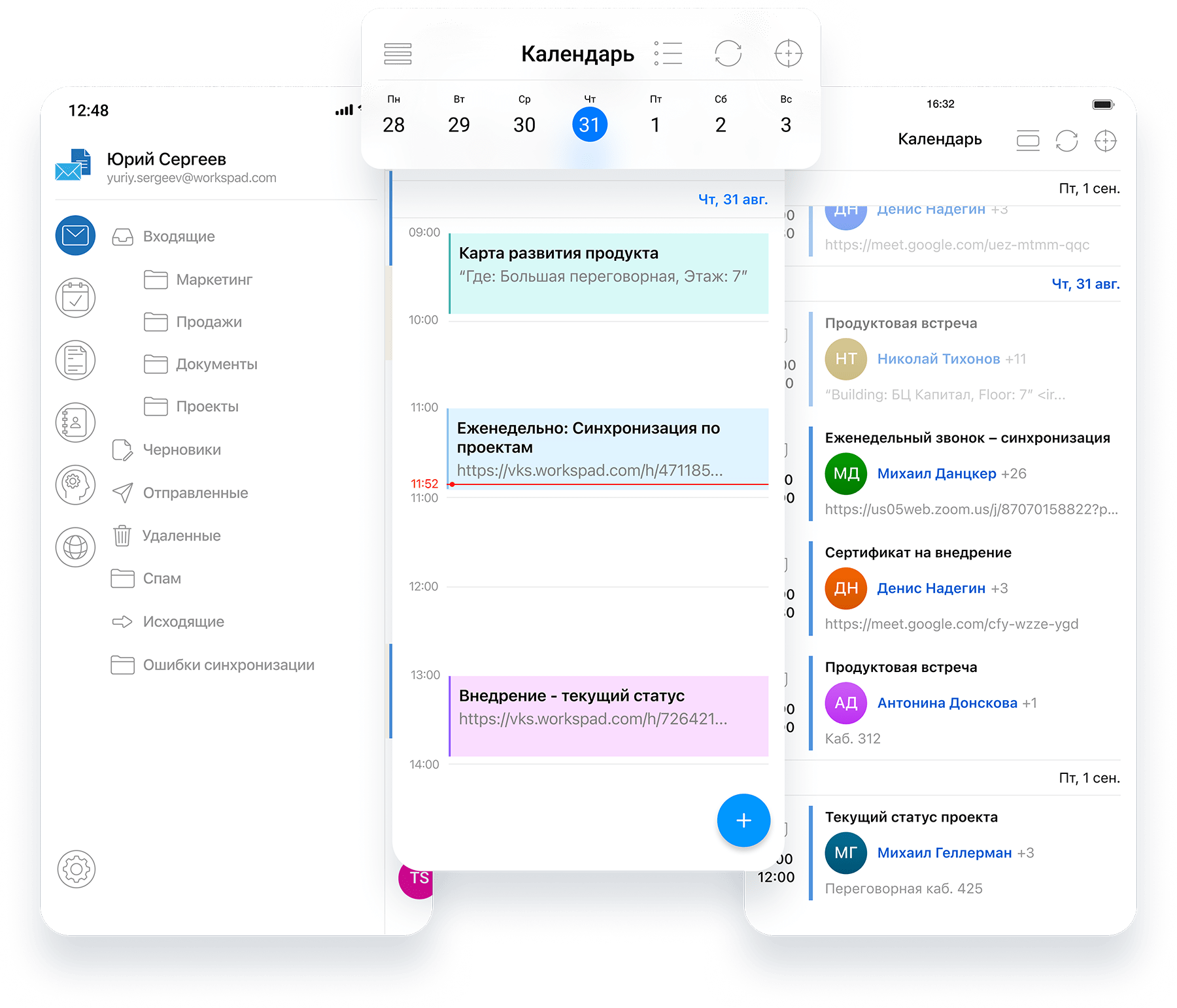 Назначение, подтверждение и отмена встреч и повторяющихся событий, возможность добавлять вложения